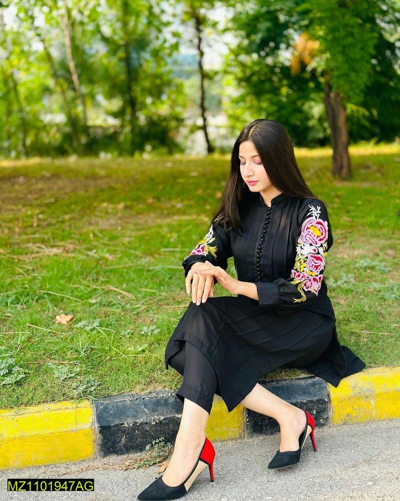 Elevate your style with our Arabic Lawn Embroidered Suit, a symbol of refinement and sophistication. Add a touch of elegance to your ensemble with this exquisite suit today!