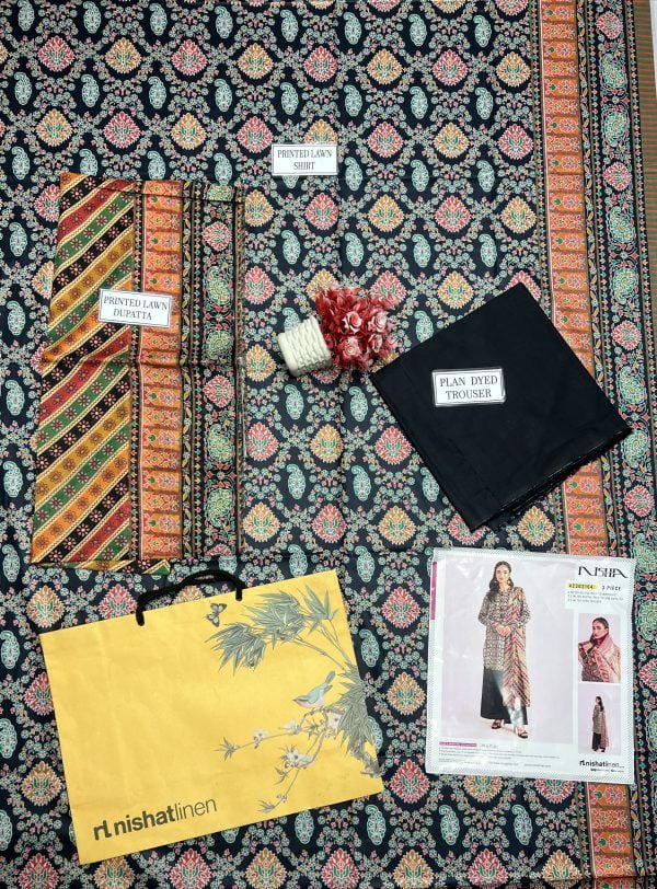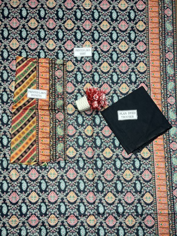 ❖Digital Printed Lawn Shirt 3.0 M ❖Printed Voil Dupatta 2.5 M ❖Dyed Lawn Trouser 2.5 M