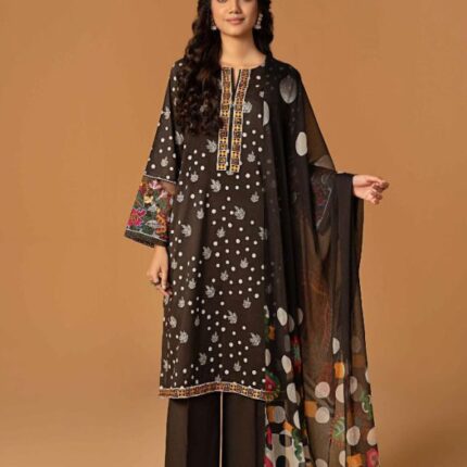 Elevate your summer wardrobe with the exquisite Lakhany Lawn Unstitched Collection. Crafted for casual elegance, this 3-piece ensemble offers versatility and style for your everyday wear. The set features a digitally printed Lawn Shirt measuring 3.0 meters, adorned with vibrant and intricate patterns. Accompanied by a beautifully printed Voil Dupatta spanning 2.5 meters, adding a touch of grace and sophistication to your look. Complete the ensemble with a dyed Lawn Trouser measuring 2.5 meters, ensuring both comfort and style. Embrace the sunny days ahead with this ensemble that seamlessly combines comfort, sophistication, and timeless elegance.