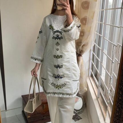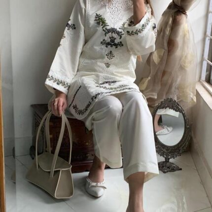 2 Pcs Women’s Stitched Arabic Lawn Embroidered Suit