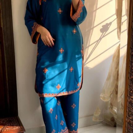 3 pcs Women Stitched Fancy katan Silk Embroidered Suit